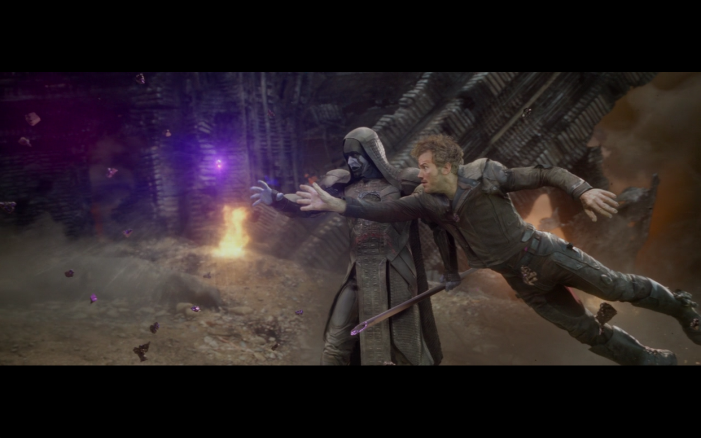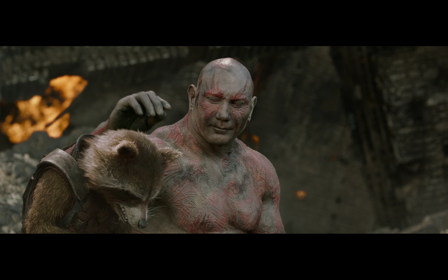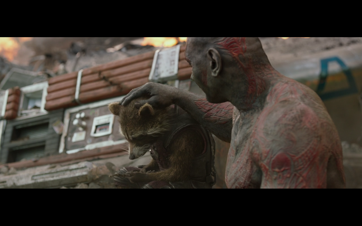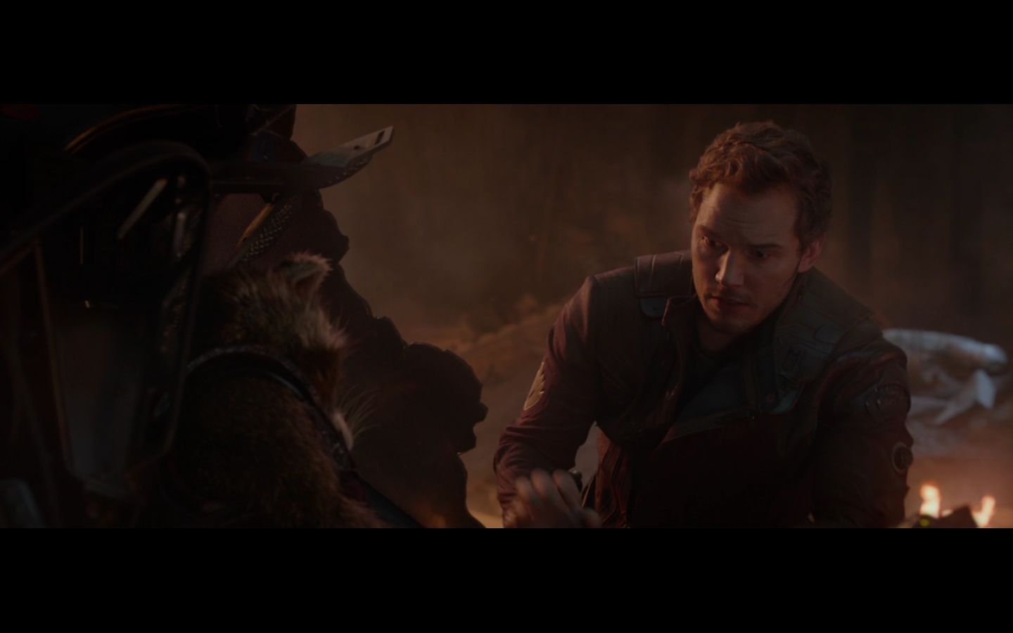 Seriously, Saal’s whole thing was “prove me wrong, Quill,” and then randomly he talked to the raccoon before he died. No form of cinematic “redemption” for him or anything. This leads me to believe either this was cut from something more, or they thought they were doing something cool by deliberately not giving him that moment. Comes off as kind of confusing, personally. That he is randomly talking to a raccoon out of nowhere rather than just getting crushed and us feeling bad.