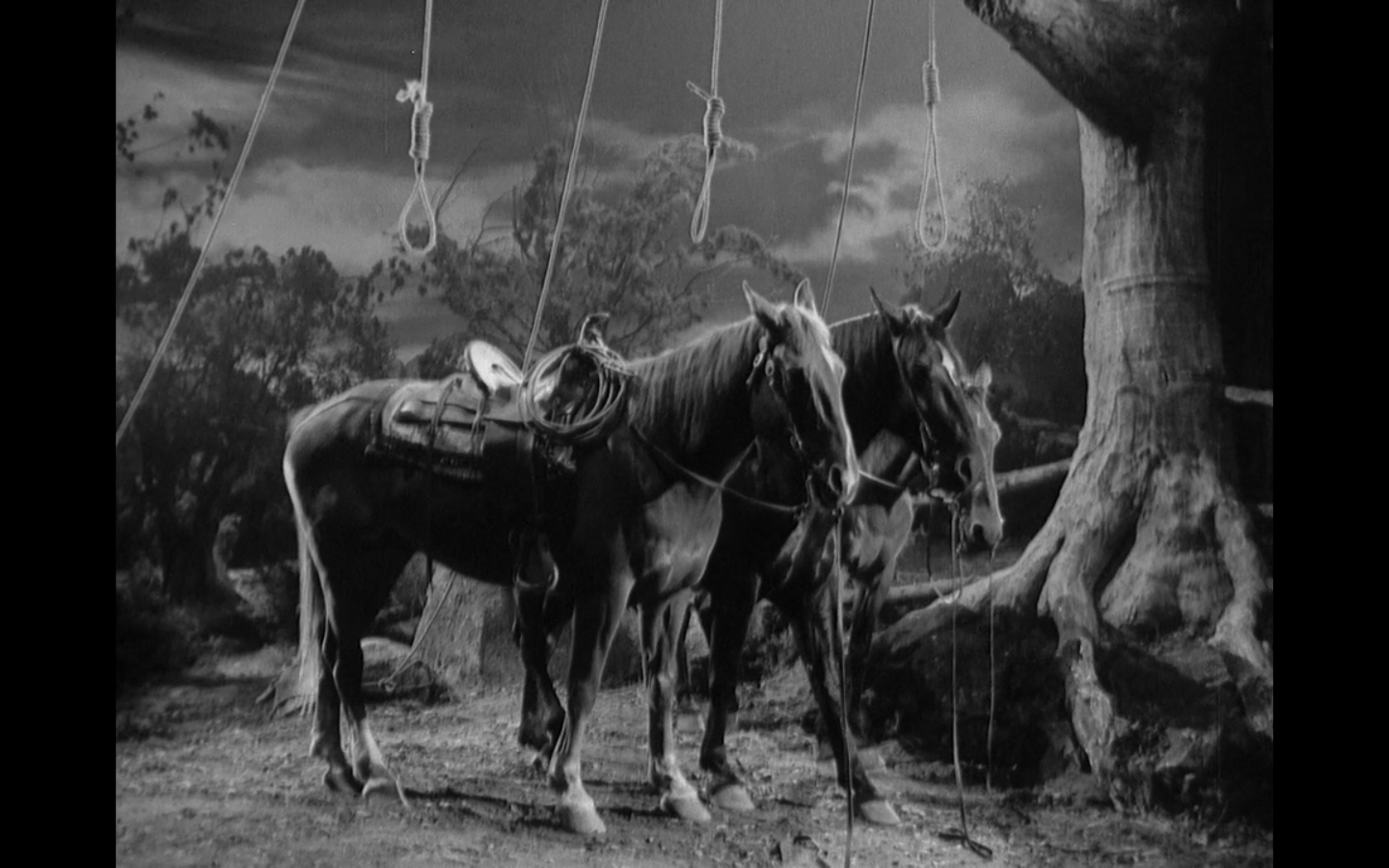 A posse captures three men suspected of murder and decides to hang them. A few of the members of the posse are conflicted, and only one (played by the African American actor Leigh Whipper in an incredible, uncredited performance) opposes it outright from the beginning. The three condemned men, two of whom are played by Dana Andrews and Anthony Quinn in stunning performances, are made to show us how they face their doom as the posse — including Jane Darwell in the least possibly “Ma”-esque Ma role ever — prepares to hang them. I love it because Henry Fonda and Harry Morgan (who you’ll know later as Col. Potter from the M*A*S*H TV show) are set up as the guys who don’t really like what’s going down but don’t do enough to stop it.