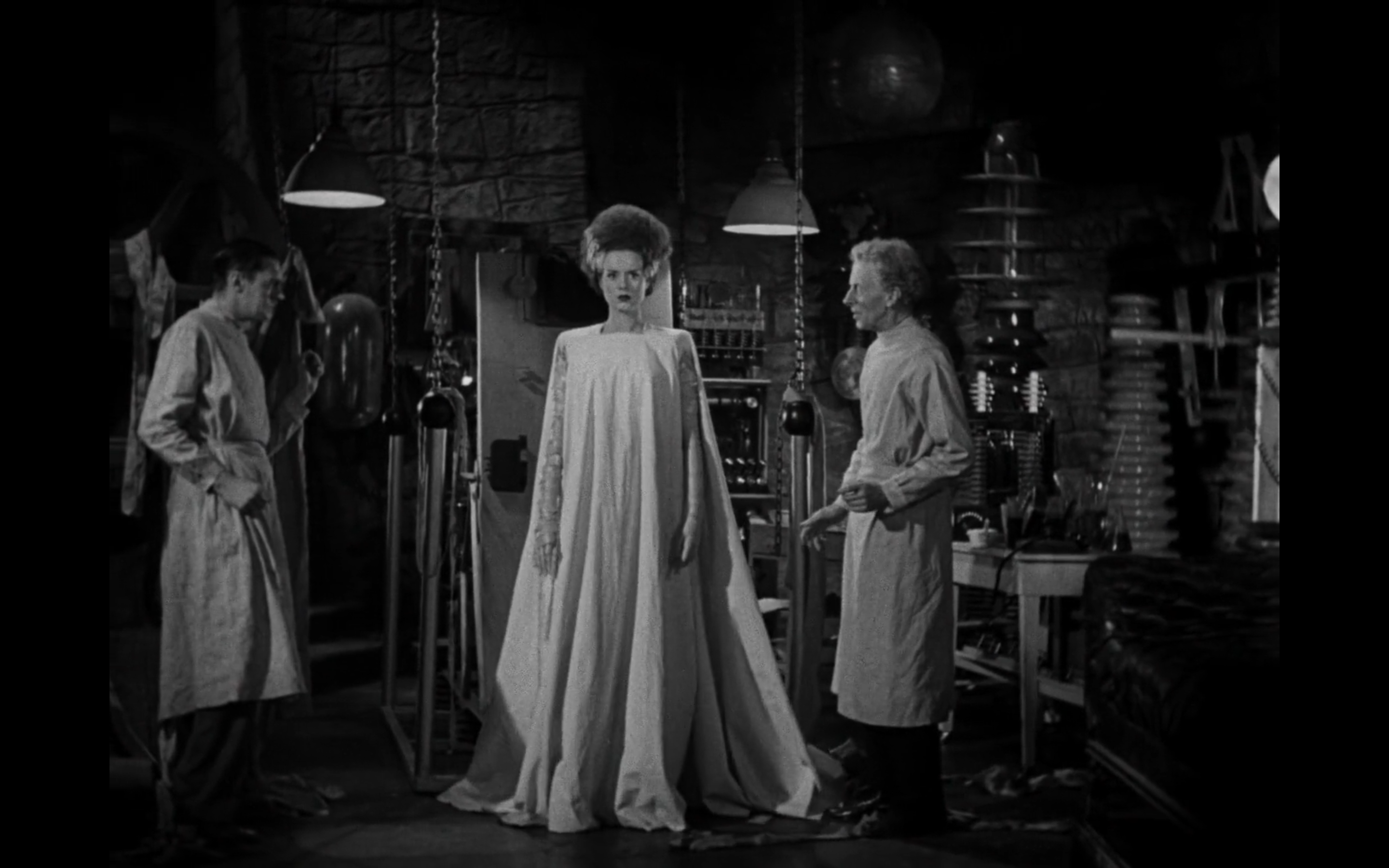 Another cool thing this movie does — the frame story features Elsa Lanchester as Mary Shelley, having written her book about Frankenstein, now has more of the story to tell. And then at the end of the film, she shows up as the Bride of the Monster, which is pretty awesome.