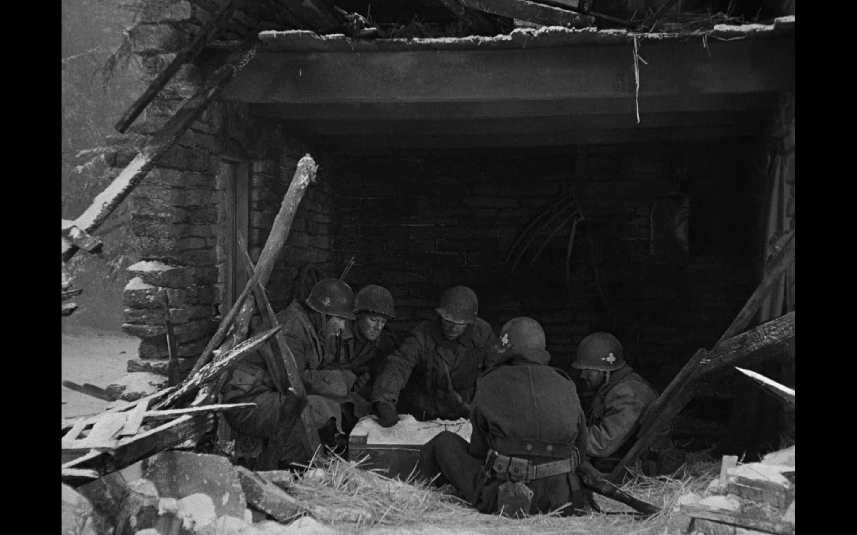 I love this movie. Something about this feels like you’re completely there, even though it was clearly shot on a soundstage. But there’s something so intimate about it. And the scenes are so casual. It’s almost like one of those Rio Bravo, Howard Hawks-type hangout films. The soldiers are just chilling with one another, even though it’s a life or death situation.