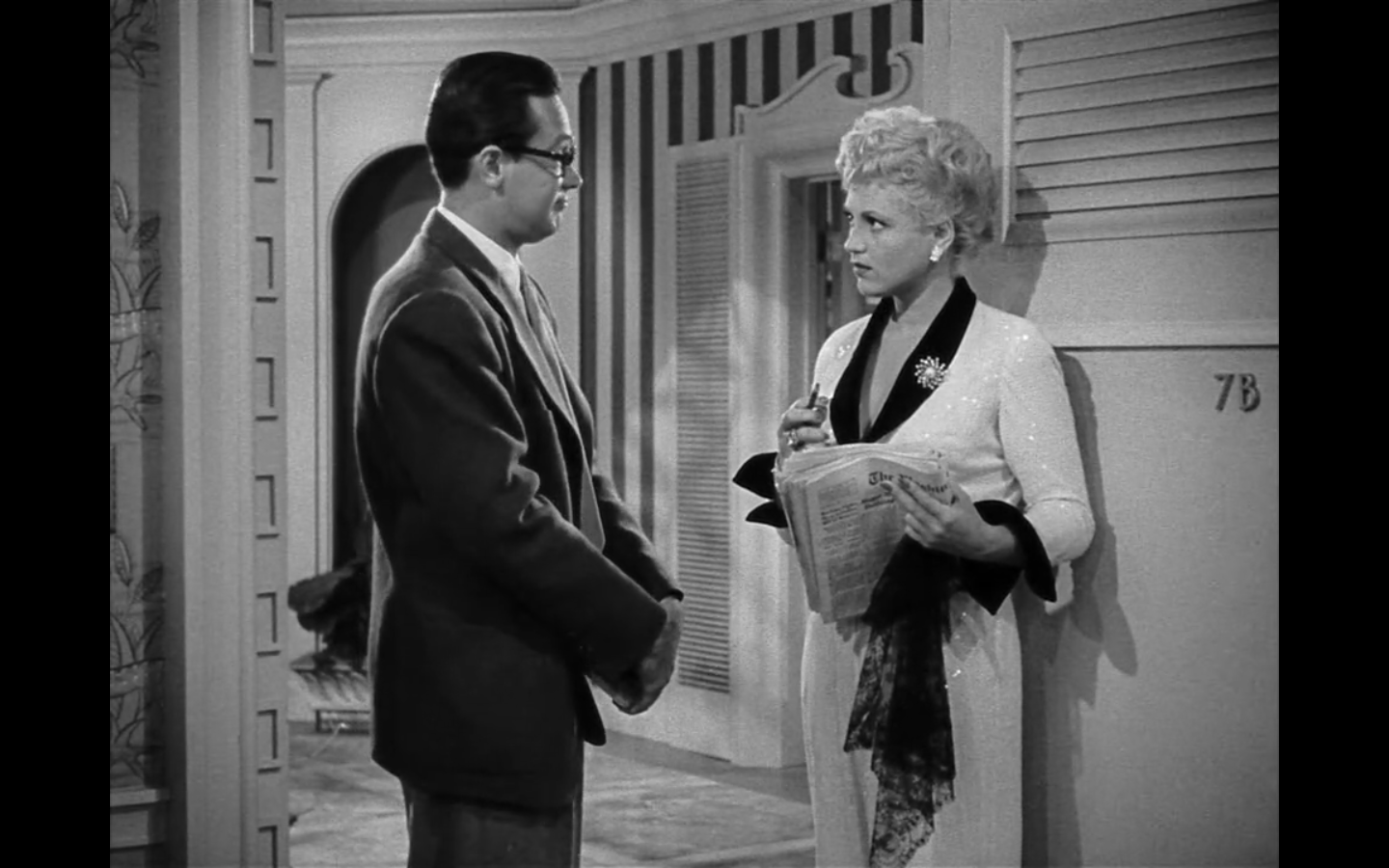 The film is about Broderick Crawford as a gangster who comes to Washington in order to buy a few congressman and get into politics. Holliday plays his girlfriend. Crawford thinks she’s too dumb to be taken around all the high society dinner parties of D.C. so he hires William Holden, a journalist, to tutor her and maker her smarter. It’s like this weird version of Pygmalion. Of course, we find out she’s actually way smarter than anyone else ever thought, and begins to make everyone look like idiots. It’s hilarious.