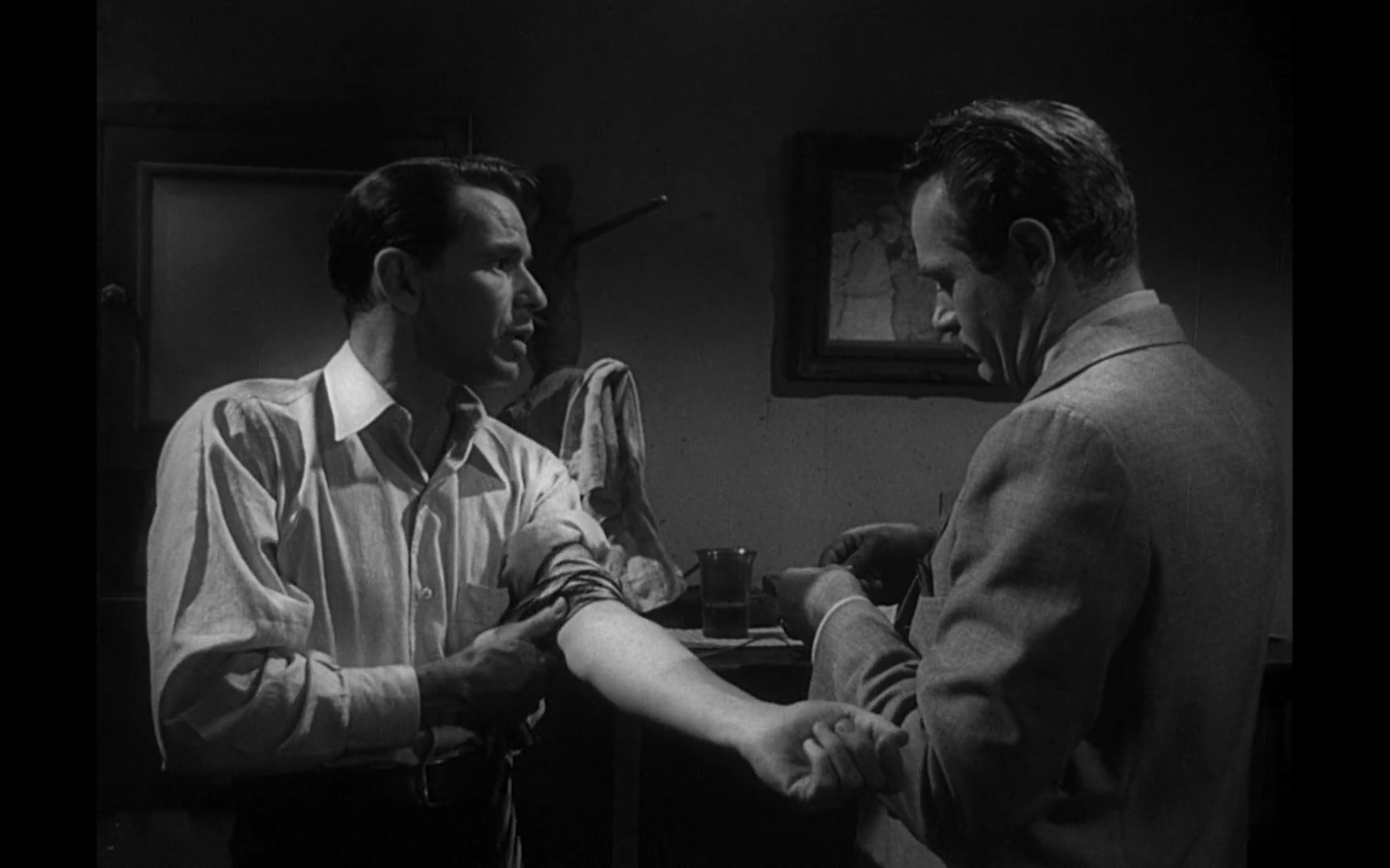 John Sturges directed this, and alongside tracy, the cast includes: Robert Ryan, Anne Francis, Dean Jagger, Walter Brennan, Ernest Borgnine and Lee Marvin. It’s also, in the noir tradition, only 81 minutes long and makes damn good use of every one of those minutes, as well as the wide screen it was shot on.