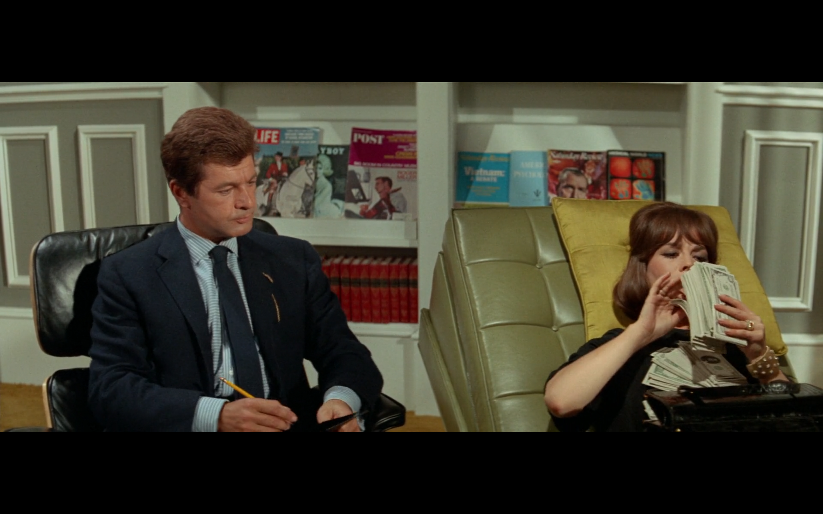 This is an incredibly 60s film starring Natalie Wood as a kleptomaniac housewife who is bored, so she decides to rob her husband’s bank. She confesses all of this to her (increasingly overwhelmed) psychiatrist, and the repercussions of the robbery play out in increasingly hilarious and screwball ways. Ian Bannen plays her husband, Peter Falk plays the cop investigating the bank robbery, Lila Kedrova and Lou Jacobi play con artists who figure out that it was Wood who robbed the bank, and Dick Shawn (who would play L.S.D. in The Producers after this) plays the psychiatrist.