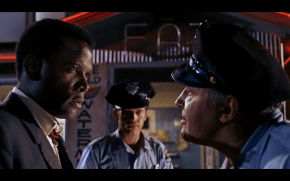 The film is about a murder in a small southern town. An officer driving around after the body is found sees Poitier at the train station waiting for a train and (after seeing his wallet full of cash) immediately assumes he did it. Though once he’s brought to the station, it’s discovered that Poitier is a major homicide detective from Philadelphia. So he ends up being asked by his chief to help solve the murder, something neither he nor the local police chief, Rod Steiger, are too thrilled about. But despite Steiger’s reluctance to work with a black man, he also sees that Poitier clearly knows what he’s doing way better than he or any of the other local cops do.