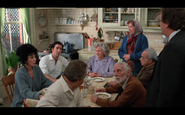 Cher won an Oscar for her performance, Olympia Dukakis won too as her mother. Vincent Gardenia was nominated as her father. Cage is… something else. And Aiello is great in limited time. It’s a really funny movie, and a great romantic comedy.