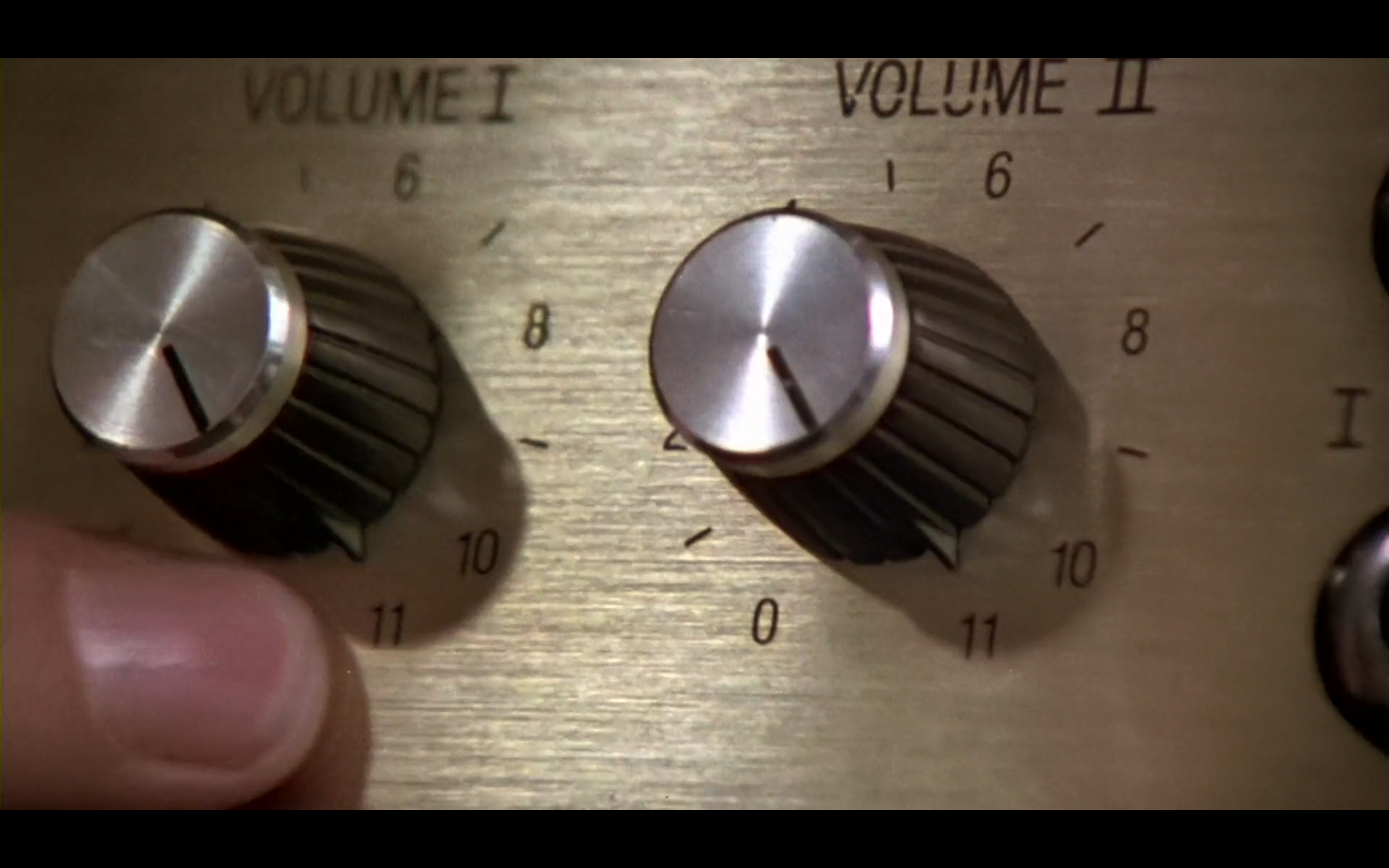 Pic of the Day: “The numbers all go to eleven. Look, right across the board, eleven, eleven, eleven and…” “Oh, I see. And most amps go up to ten?” “Exactly.” “Does that mean it’s louder? Is it any louder?” “Well, it’s one louder, isn’t it? It’s not ten. You see, most blokes, you know, will be playing at ten. You’re on ten here, all the way up, all the way up, all the way up, you’re on ten on your guitar. Where can you go from there? Where?” “I don’t know.” “Nowhere. Exactly. What we do is, if we need that extra push over the cliff, you know what we do?” “Put it up to eleven.” “Eleven. Exactly. One louder.” “Why don’t you just make ten louder and make ten be the top number and make that a little louder?” “These go to eleven.” (35th Anniversary)