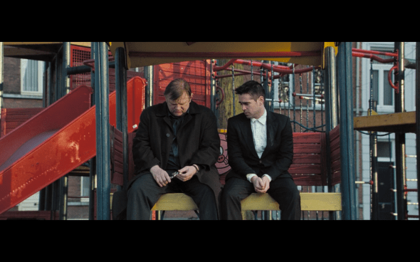 The general plot is about two hitmen taking some time off after a job gone wrong. Colin Farrell and Brendan Gleeson are the hitmen. Farrell is wracked with guilt, while Gleeson is there to try to keep him stable. The pair are in Bruges because their boss, Ralph Fiennes, said it’s a beautiful, quiet city that will allow them to take their mind off things. Of course, Farrell fucking hates it and wants nothing to do with it, and Gleeson is there, taking in the sights on his own most of the time. And of course, things progress on their own, and all sorts of side characters pop up, and before you know it, you start putting things together and things start coming back and paying off and you’re just completely in on everything that’s going on.