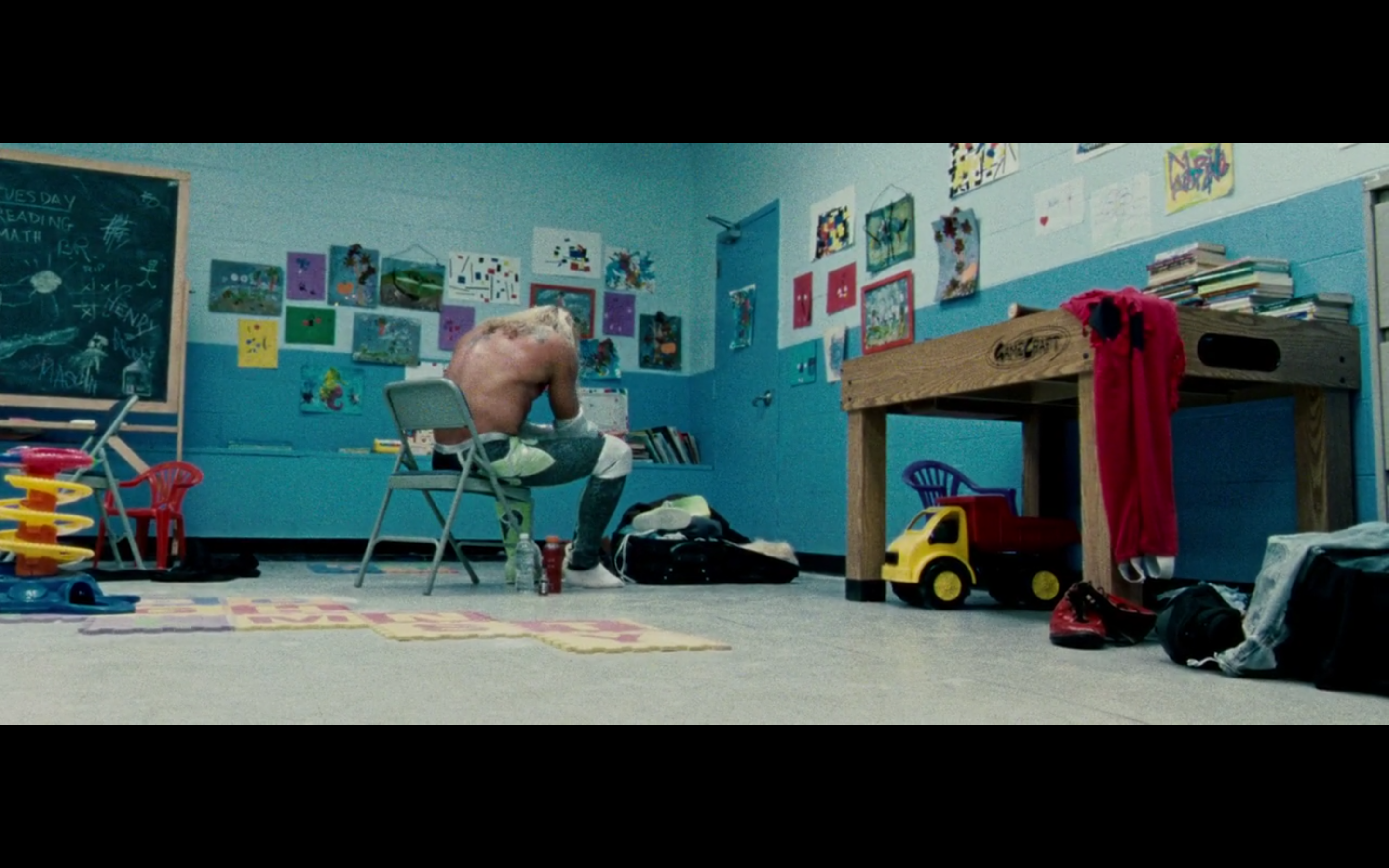 It’s a simple movie about a washed up professional wrestler, who was huge in the 80s, and is now pushing 60 and playing high school gymnasiums for like, $100 a show and working at a supermarket during the day to make ends met. And as he sees the end of the road nearing, he both starts a relationship (of sorts) with a stripper while also trying to reconnect with his estranged daughter.