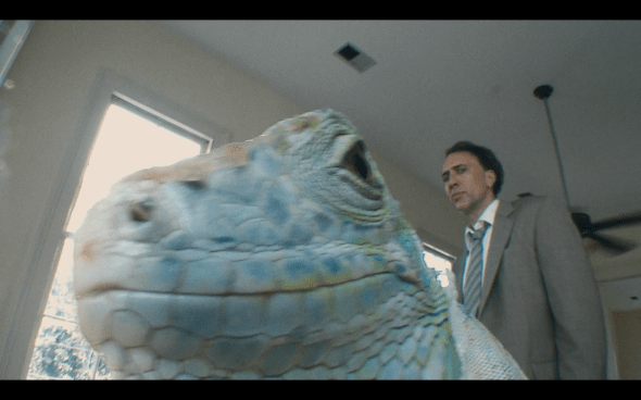 The brilliance of this movie is that you’re not really paying attention to the story. I’ve seen this movie over a dozen times and I still couldn’t really tell you, beat by beat, how the story goes. It’s all about watching the Cage performance. It’s… astounding. And Werner Herzog leans into that by giving you these insane moments, like the one pictured above, where Cage has a full minute music montage of him just staring at iguanas on a coffee table. And the movie never makes it clear if they’re really there or not, or if it’s just a drug hallucination. Doesn’t really matter, in the end, because it’s one of the most wonderful moments in the film.
