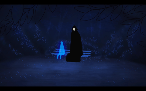 This is not a particularly uplifting short, but the way in which it’s animated and its visual beauty make up for that. It starts with a man stumbling drunk out of a bar and getting hit by a car and killed. His soul wanders away from his body and is followed through the streets by Death, who talks with him in a park and takes him in this incredible journey. It’s a hell of an experience to witness. You’re watching this particular soul become accepting of the inevitability of death. It’s a pretty heavy short, but really well done.