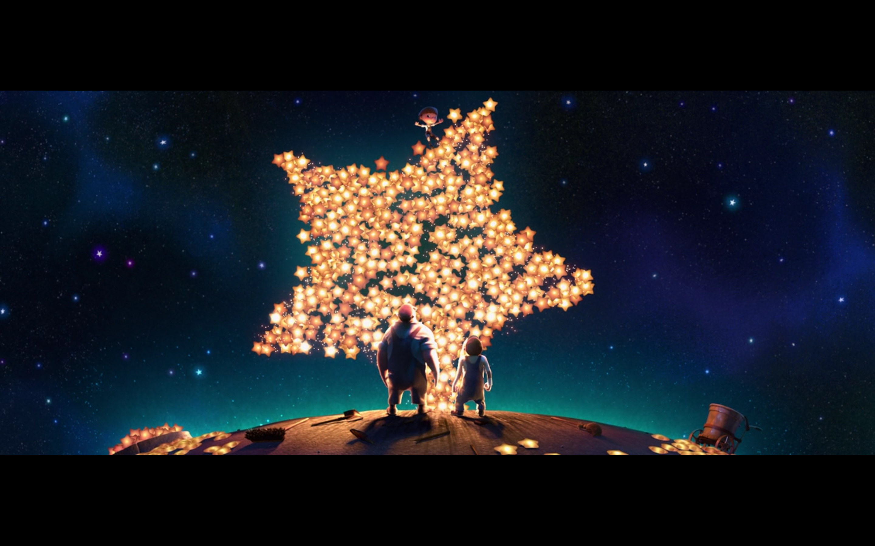 This is a short that’s light on plot, but heavy on the visuals. It’s about a young boy who goes to work with his father and grandfather — sailing out to see and climbing up to the moon, whereupon they begin sweeping up the fallen stars. That’s pretty much it. It’s all about the beauty of the visuals and the nice feeling of the three generations all working together and being close. Sometimes that’s more than enough.