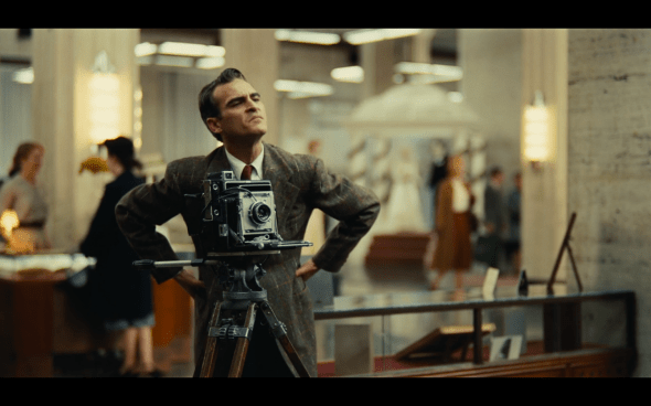 Of course, all we really knew about this film was that it was based on Scientology in some way. And then it starts, and you get those opening scenes with Joaquin… on the ship, making liquor from jet fuel, passed out, jerking of into the ocean, trying to be a civilian, and that incredible scene at the mall where he’s taking people’s pictures… and you’re just completely riveted. Watching him in those scenes is like watching a child or an animal — you truly don’t know what he’s gonna do at any point in time. And he’s got that weird way he carries himself — that posture, and the sort of half-closed eye… you just can’t look away whenever he’s on the screen. It’s one of the most surprising and jaw-dropping performances I’ve ever seen. Within thirty minutes of this film starting, he elevated himself from ‘very good actor who’s in some great stuff’ to ‘one of the greats that we have’.
