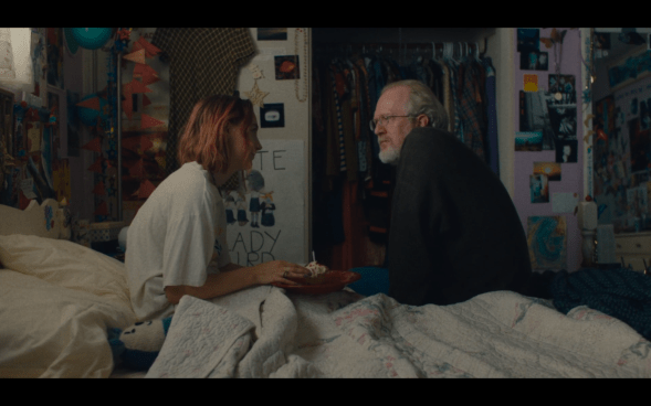 There’s Tracy Letts again. This is probably the one performance most people would remember of his. Maybe Big Short. But I suspect this is where most people would have known him from (though now it’ll probably be Little Women). He’s so great as the dad in this film. It’s almost a thankless performance, especially with the film largely being about Ronan and Laurie Metcalf’s characters, but he gets some fantastic moments to shine in there. There’s the whole bit about him having been laid off and being unable to find work, and then eventually losing out a job to his son. That shit is heartbreaking, and he handles it so well. And there’s the undercurrent of him having depression about not being able to provide for the family, but never having it be a big deal. And then he has these really tender moments with his daughter, getting to be the one who balances out all the fighting between mother and daughter. I really love how tender he is in those moments. He feels like a real dad.