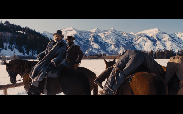 With Quentin, most of the work is done in the writing. And a lot in the casting. He gets the right actors and just lets them go and doesn’t really have to do much in the way of direction. But if there’s one thing I can say about him as a director, it’s that there’s always a bunch of cool shots or moments or camera movements or something in his film that everyone remembers. He’s not the flashiest director ever, and in a lot of ways, unless he’s specifically paying homage to something, most of the time he does tend to keep his camera from getting in the way of his words. But that’s part of his strength as a director. He knows when to not go overboard. I like the job he did here.