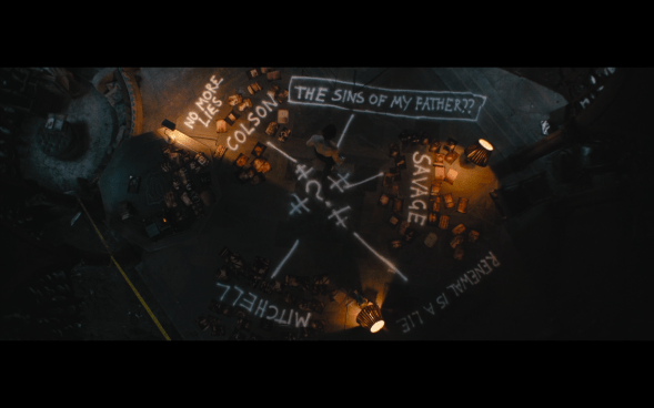 What makes this movie work is they got to one of the core roots of what Batman is, something none of the other films really ever got into: a detective. And so turning this film into a slow-burn murder-mystery immediately made it stand out and become something different. It allowed for them to reestablish all the classic Batman tropes without having to do another damn origin story. Because what’s so interesting about this movie is how it is a kind of origin story (since it’s clear he’s not fully Batman yet, as evidenced by him not picking up on a piece of the clues, or that scene where he just slams into that car and eats shit after he jumps off the building), but never one where, by the end, he’s become the character we know. Really all that happens by the end is him deciding to keep doing what he’s doing, and become more hero than vigilante.